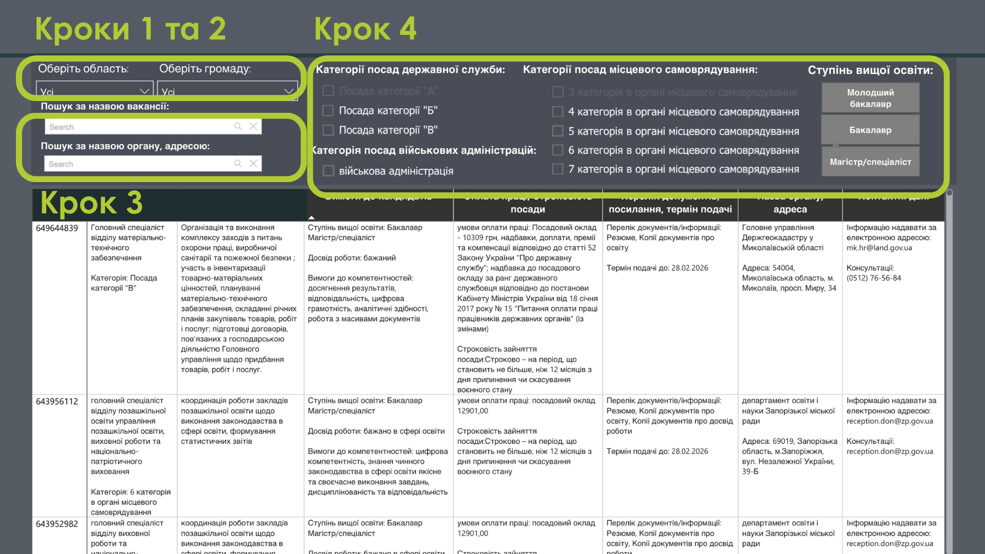 Цей інструмент допоможе вам знайти роботу в органах публічної влади, де ваші навички та досвід будуть максимально корисними.