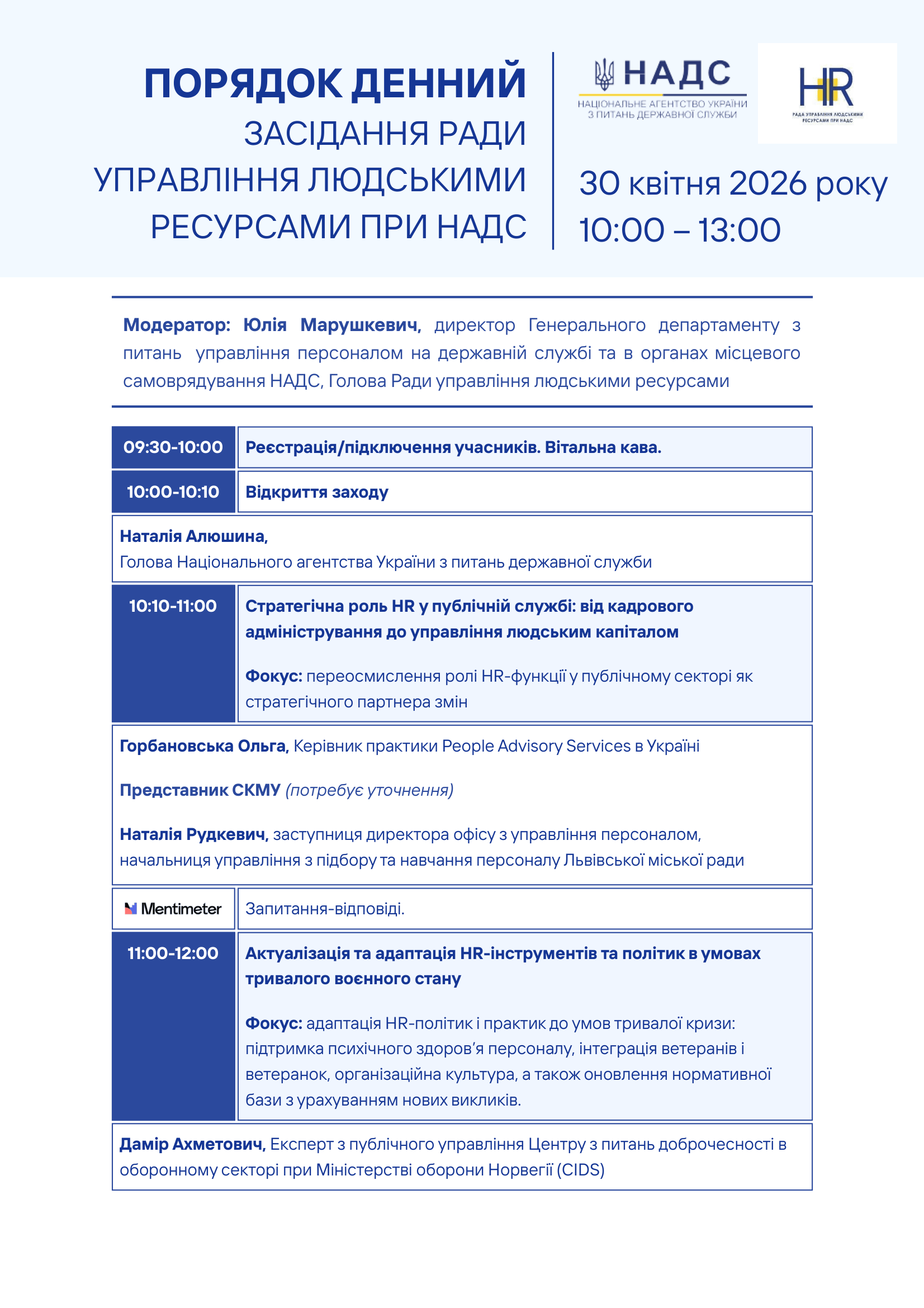 Вже 30 квітня - засідання Ради управління людськими ресурсами при НАДС