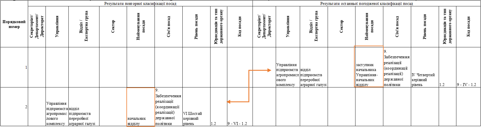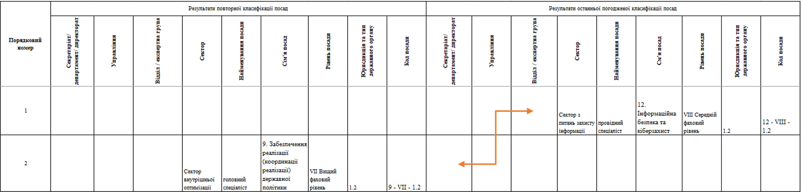 3. Порівняльна відомість складається у разі проведення повторної класифікації посад та відображає зміни між:
