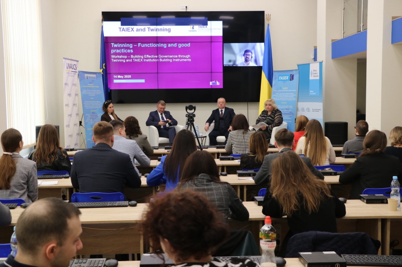 14 травня у НАДС відбувся семінар-практикум «Розбудова ефективного управління через інструменти інституційної розбудови Twinning і TAIEX». Серед учасників - експерти, держслужбовці, європейські партнери й ті, хто будує нову якість державного управління, зокрема, через інструменти інституційної відбудови Twinning і TAIEX. Семінар організовано Центром адаптації державної служби до стандартів ЄС, Вищою школою публічного управління та Представництвом Фонду Ганса Зайделя в Україні.