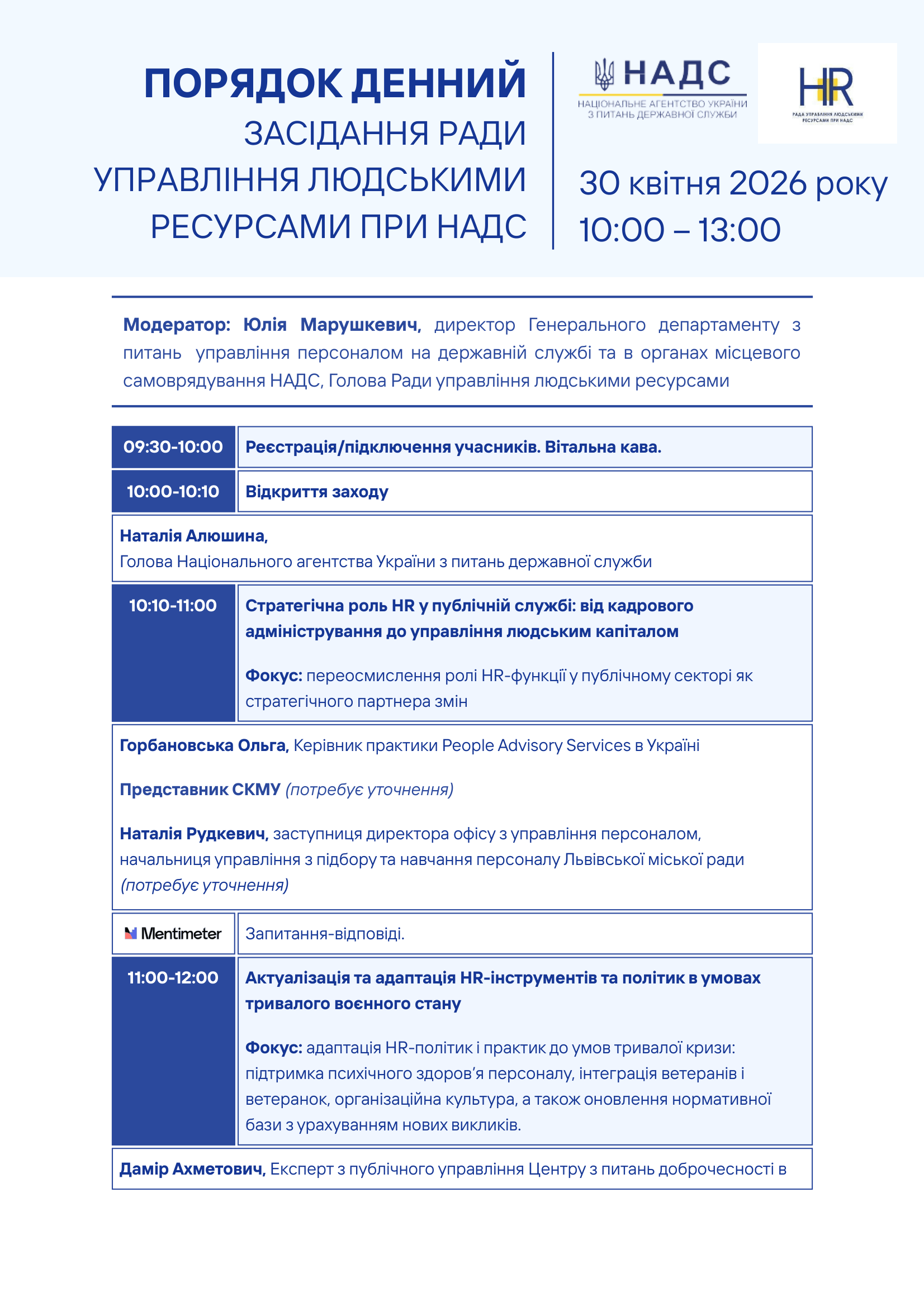 Відповіді на ці питання - під час засідання Ради управління людськими ресурсами при НАДС, яке об’єднає представників державних органів, органів місцевого самоврядування та міжнародних партнерів.